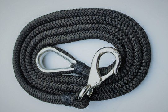 3/8” double braid line with a stainless snap on one end and a light duty stainless thimble on the other end.